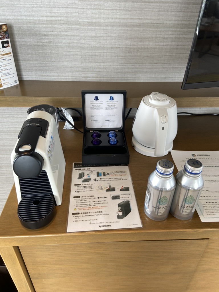 お部屋も広々していて、窓からの絶景は昼間も夜も朝もカーテンを閉めるのが勿体無いくらいです。そこに居るだけで非日常を味わえる上に、部屋に準備してあるドリンク類は全て無料でお部屋ステイを贅沢なものにしてくれます。