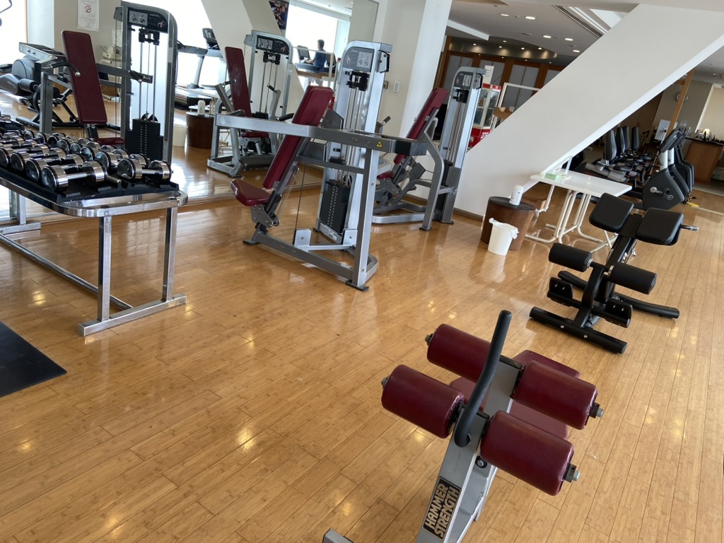 1階のスポーツジムやプールも無料利用できるので普段からトレーニングしている人にも安心です。ジム未体験の人ならこの機会に一度体験してみても良いですね。妻も初チャレンジしていました。