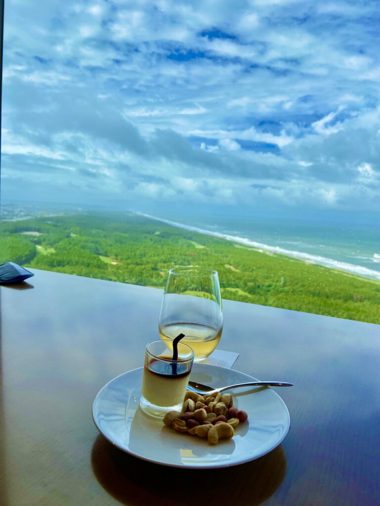 天空のクラブラウンジで宮崎の地物の味を楽しむ。景色もいい!