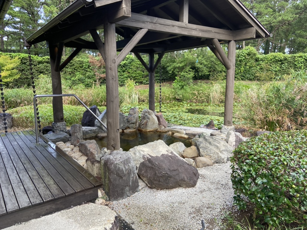 温泉に浸かっている体は暑いのですが、松林から吹く風が心地よくゆっくり浸かることができました。